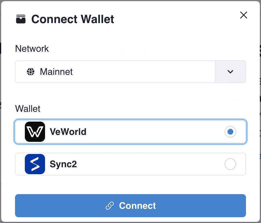 Previous VeChain dApps will continue to work and connect by default with Sync2.