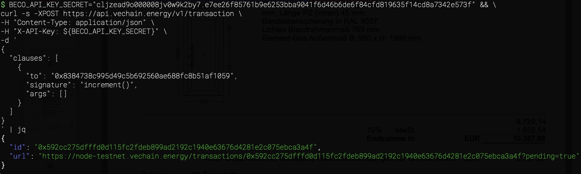 A transaction can be tested in the API documentation, and with the help of the Contract Manager, code snippets can also be generated.
