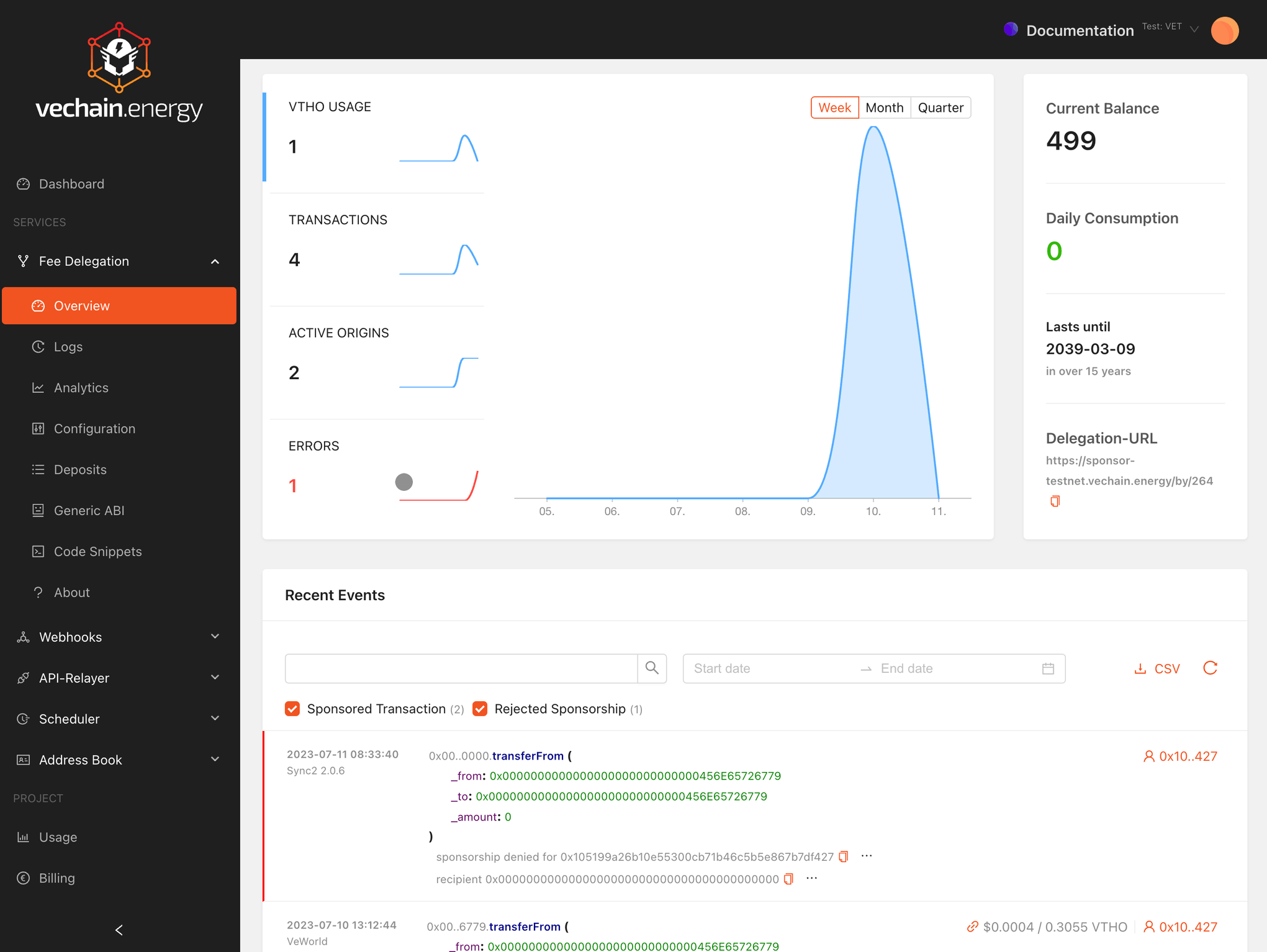 All transactions that are sponsored by the delegation wallets are tracked and archived. The information is publicly available on the blockchain and stored for debugging purpose.