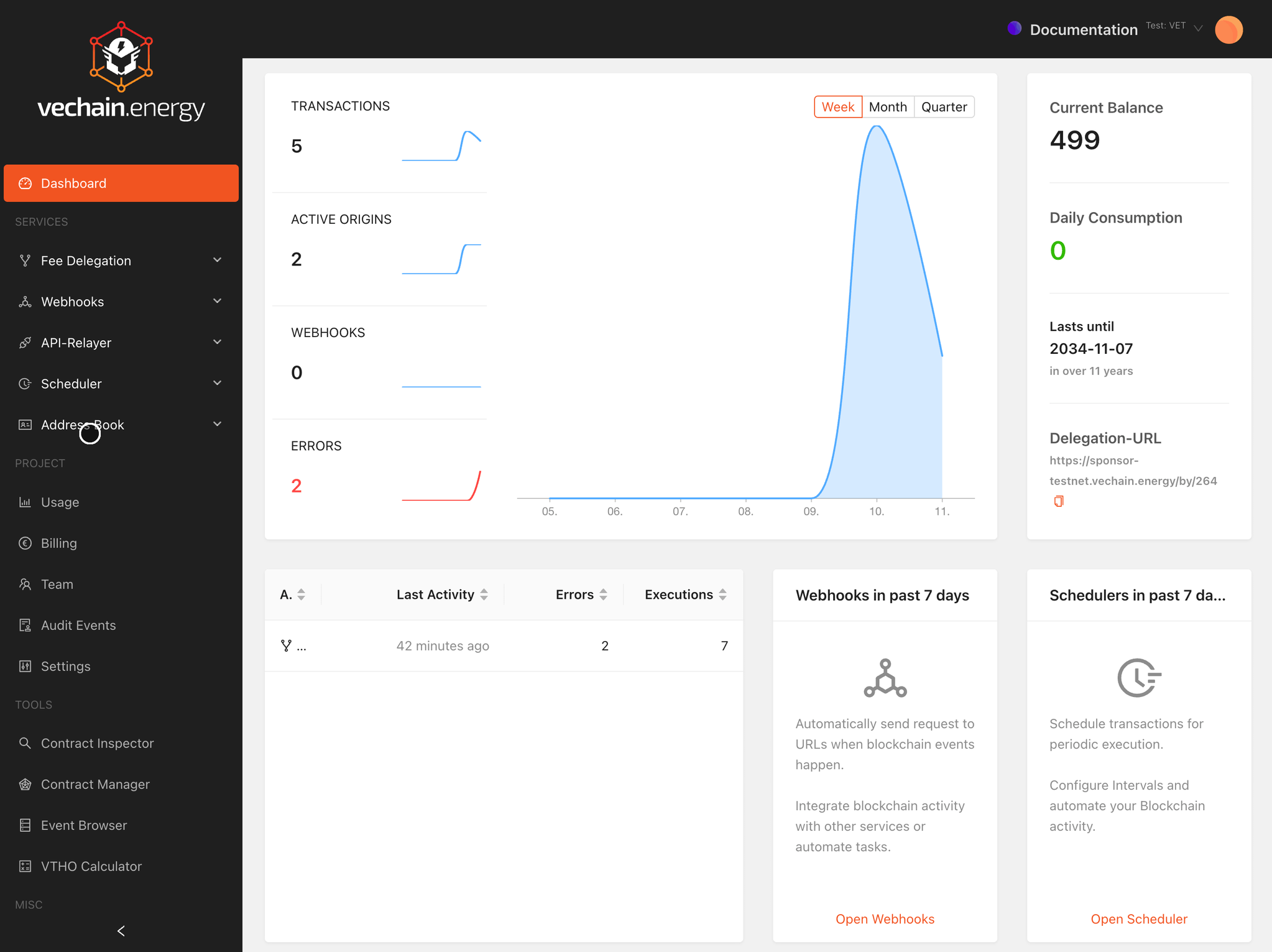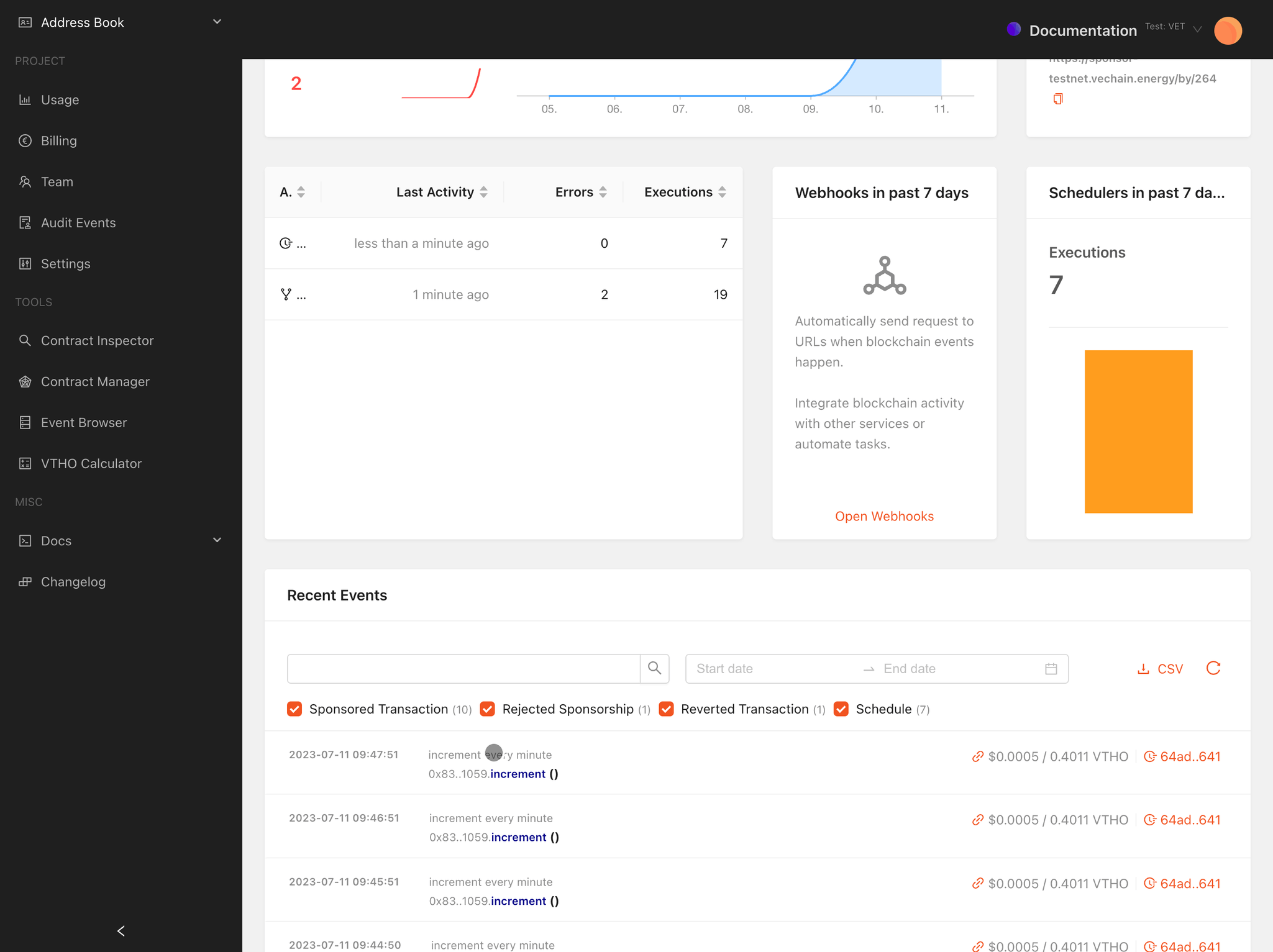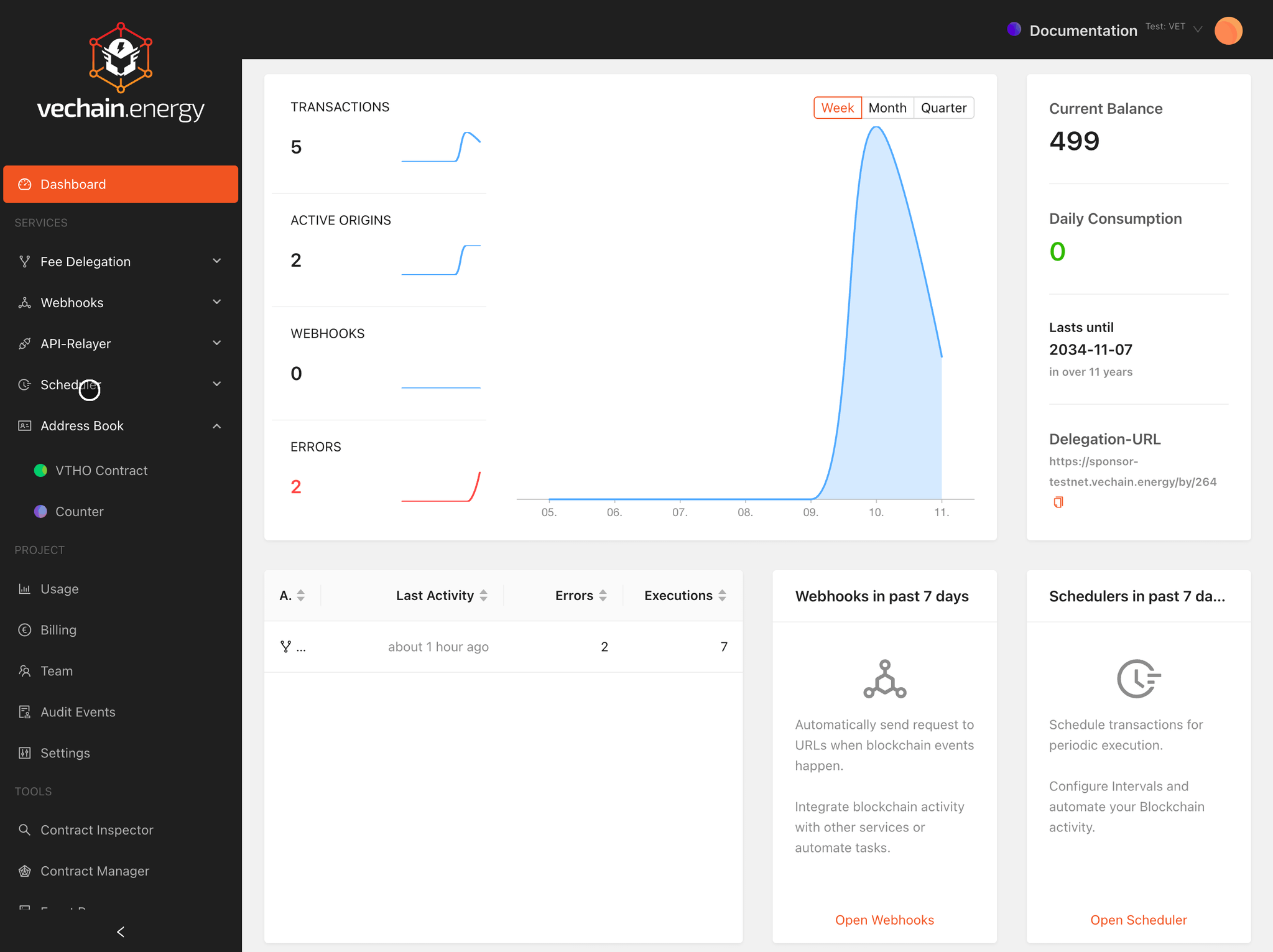 In the Dashboard the combined information of the Scheduler Execution, Fee Delegation and the Transaction provides instant insight of each transaction.